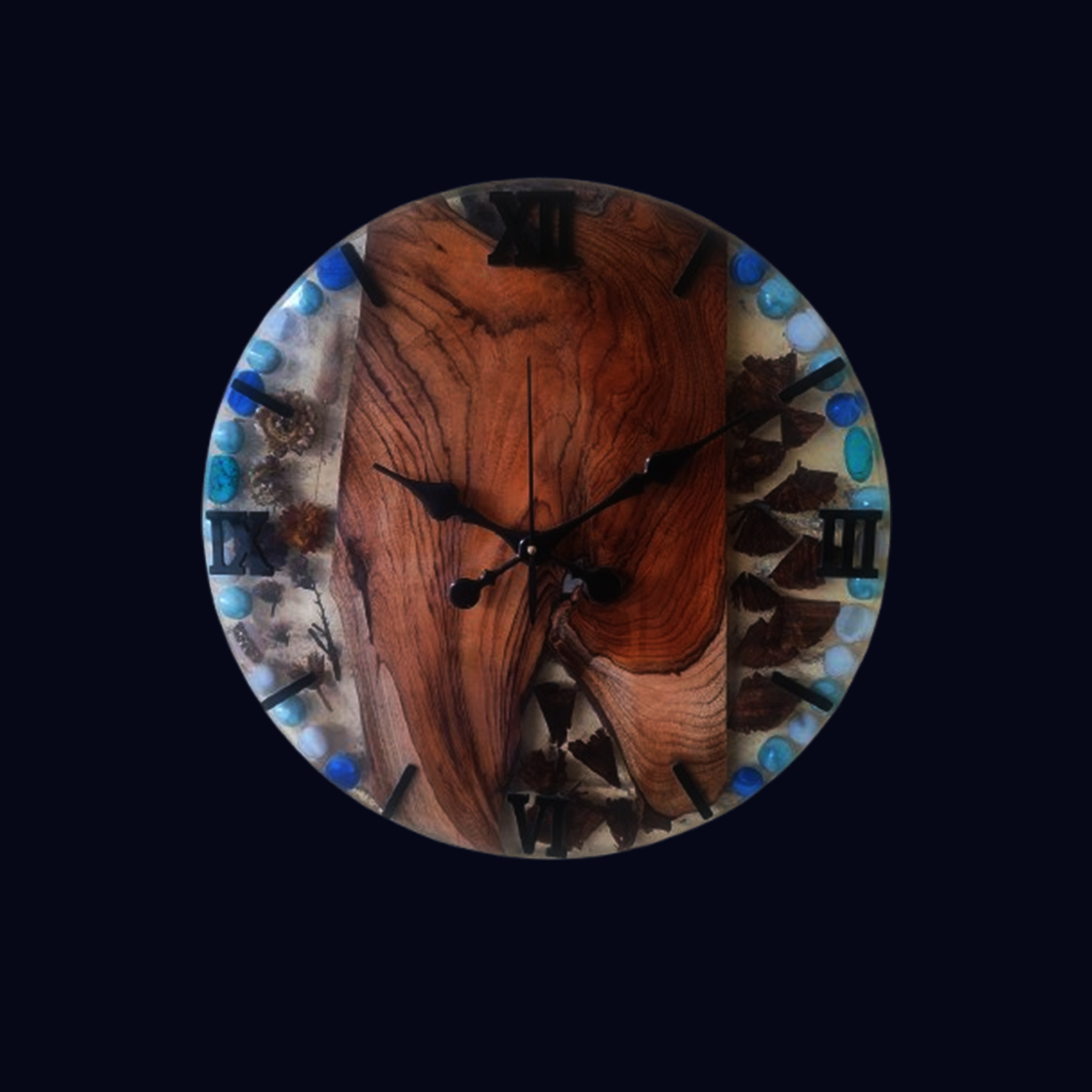 Round Teak Wood & Smoky Epoxy Resin Wall Clock